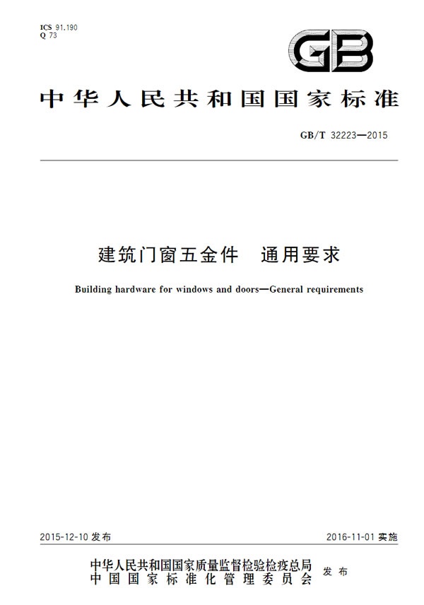 中國標準分類號(CCS)Q73 國際標準分類號(ICS)91.190 發布日期2015-12-10 實施日期2016-11-01 主管部門 住房和城鄉建設部歸口單位全國建筑構配件標準化技術委員會 發布單位 中華人民共和國國家質量監督檢驗檢疫總局、中國國家標準化管理委員會