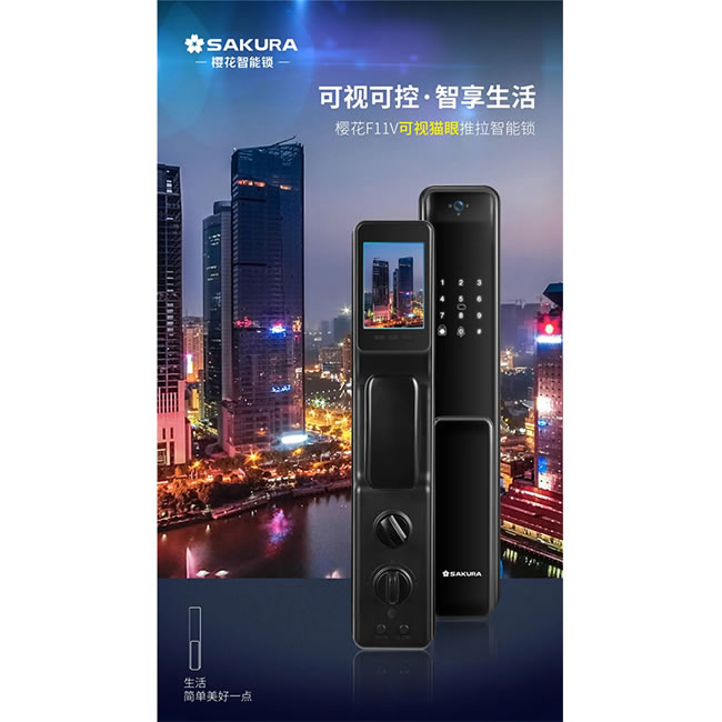 • 櫻花智能鎖 F11V可視貓眼推拉智能鎖 廣東櫻花智能科技有限公司
