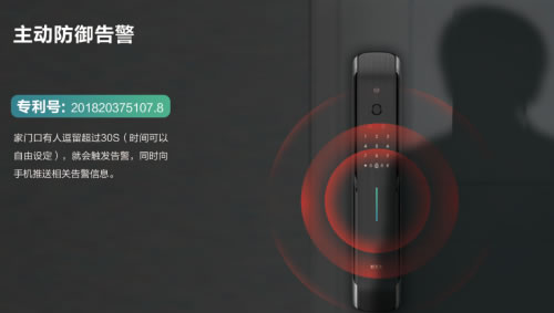 好太太智能鎖GW-V83具有主動防御功能,基于對人體生物場的探測技術,對門口的異常情況進行主動探測和防御,一旦小偷在距離門鎖0.3米區域停留超過30秒(時間可自行設置),就會立即報警,并且立刻給用戶發送報警信息,同時發出震懾聲響警報,讓小偷無處遁形。