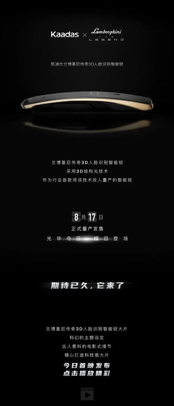 凱迪仕蘭博基尼傳奇3D人臉識(shí)別智能鎖,擁有3D人臉識(shí)別、指紋、密碼、CPU卡、遠(yuǎn)程授權(quán)臨時(shí)密碼、機(jī)械鑰匙,6大解鎖方式。承襲超跑血統(tǒng),7.6°流暢弧面,無縫貼合掌心,暢享疾速操作,光影流轉(zhuǎn),煥發(fā)攝人魅力,重構(gòu)奢華想象。