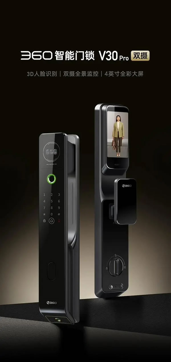 360推出智能門鎖V30Pro:支持3D人臉識別+雙攝,首發價1699元